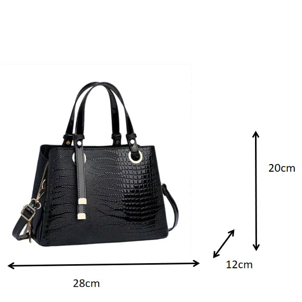 Make a sophisticated statement with this stunning retro-inspired messenger bag. Featuring luxurious crocodile-embossed leather and a spacious high-capacity design, this handbag combines timeless elegance with modern functionality for the fashion-forward woman.