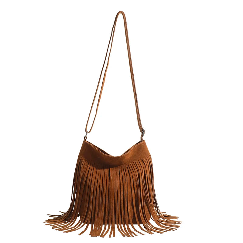 Women's Retro Frosted Shoulder Bag with Tassel - Vintage Style Handbag