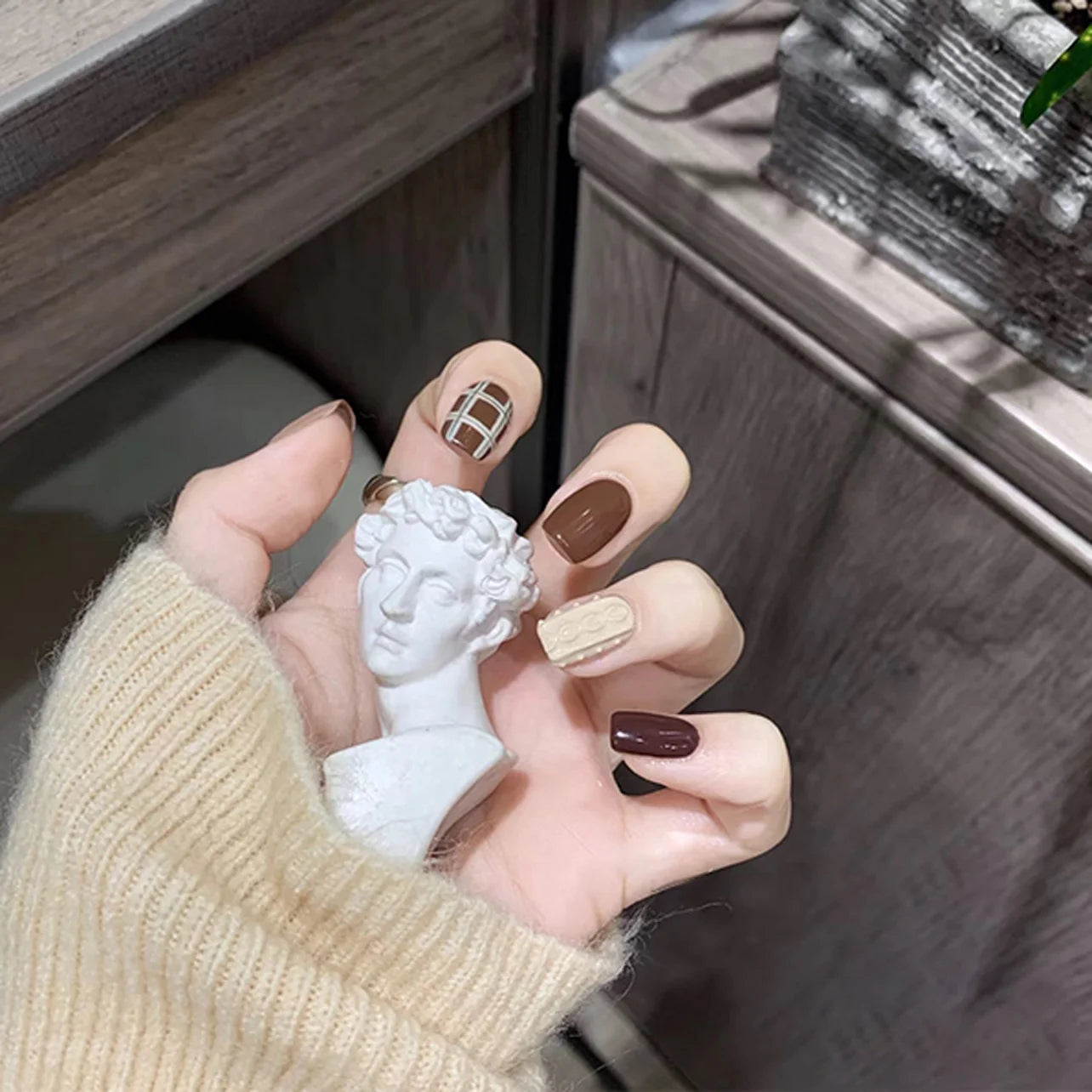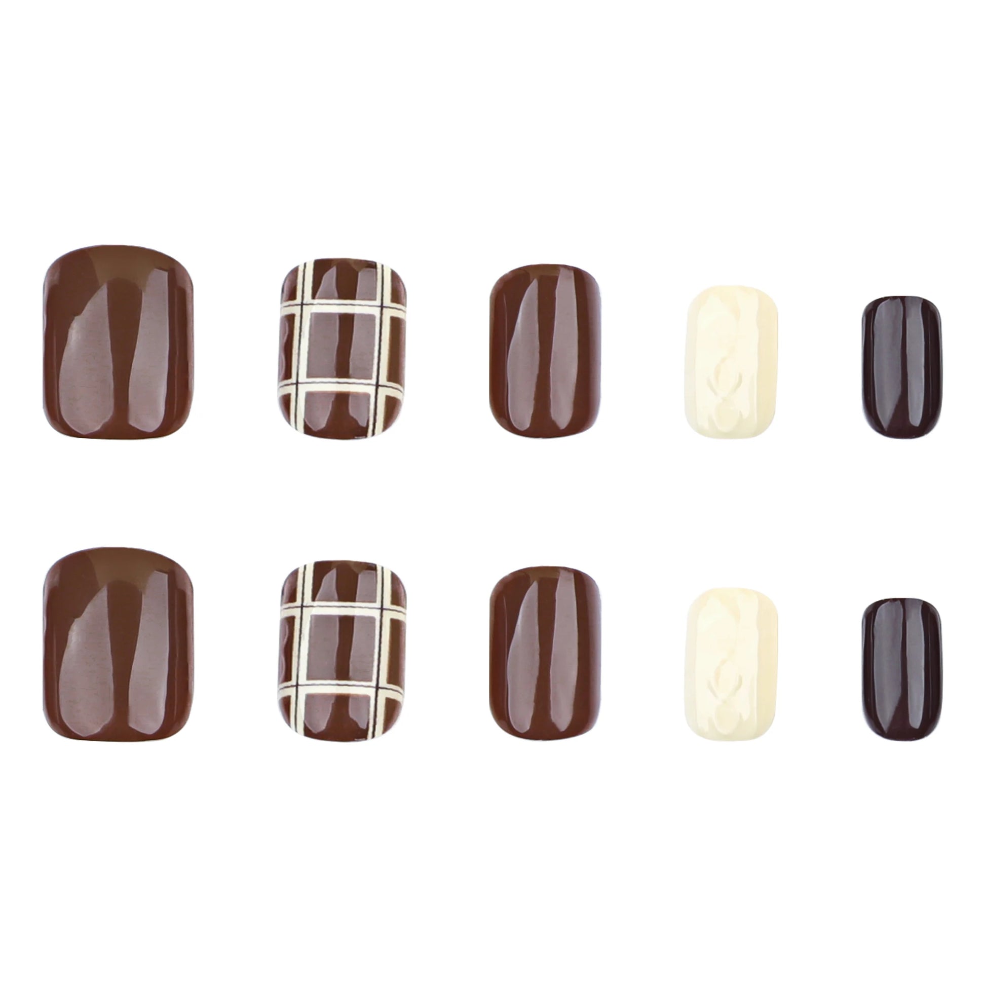 Embrace the cozy sophistication of autumn with this stunning 24-piece set of dark brown press-on nails. Featuring the trendy Maillard color palette in a chic short square shape, these acrylic nails bring warm, earthy tones to your look with effortless style and salon-quality finish.
