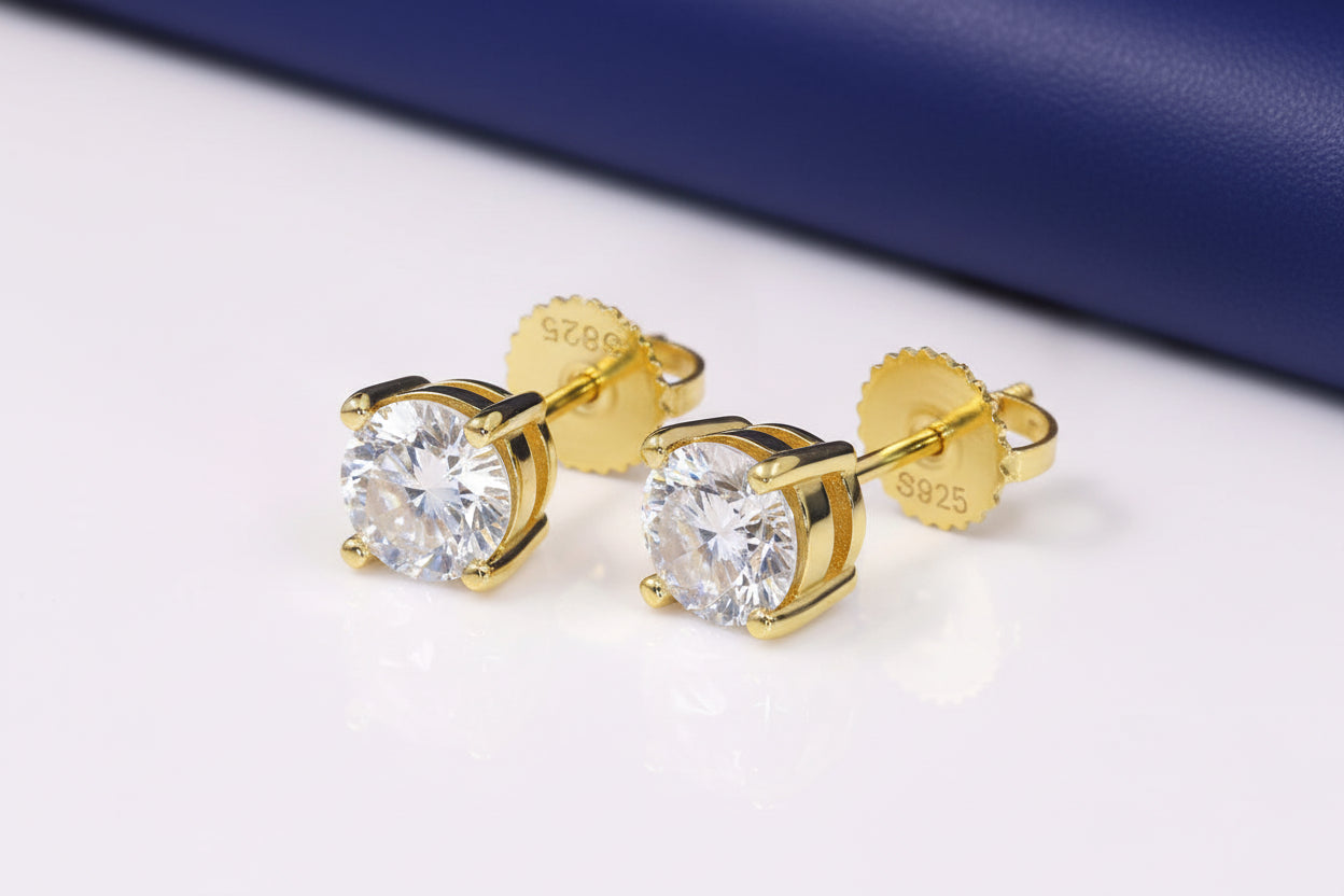 Experience the timeless elegance of these stunning moissanite stud earrings. Featuring a classic 4-claw setting in 925 sterling silver with secure screw backs, these earrings offer the brilliance of diamonds with exceptional value and ethical sourcing.