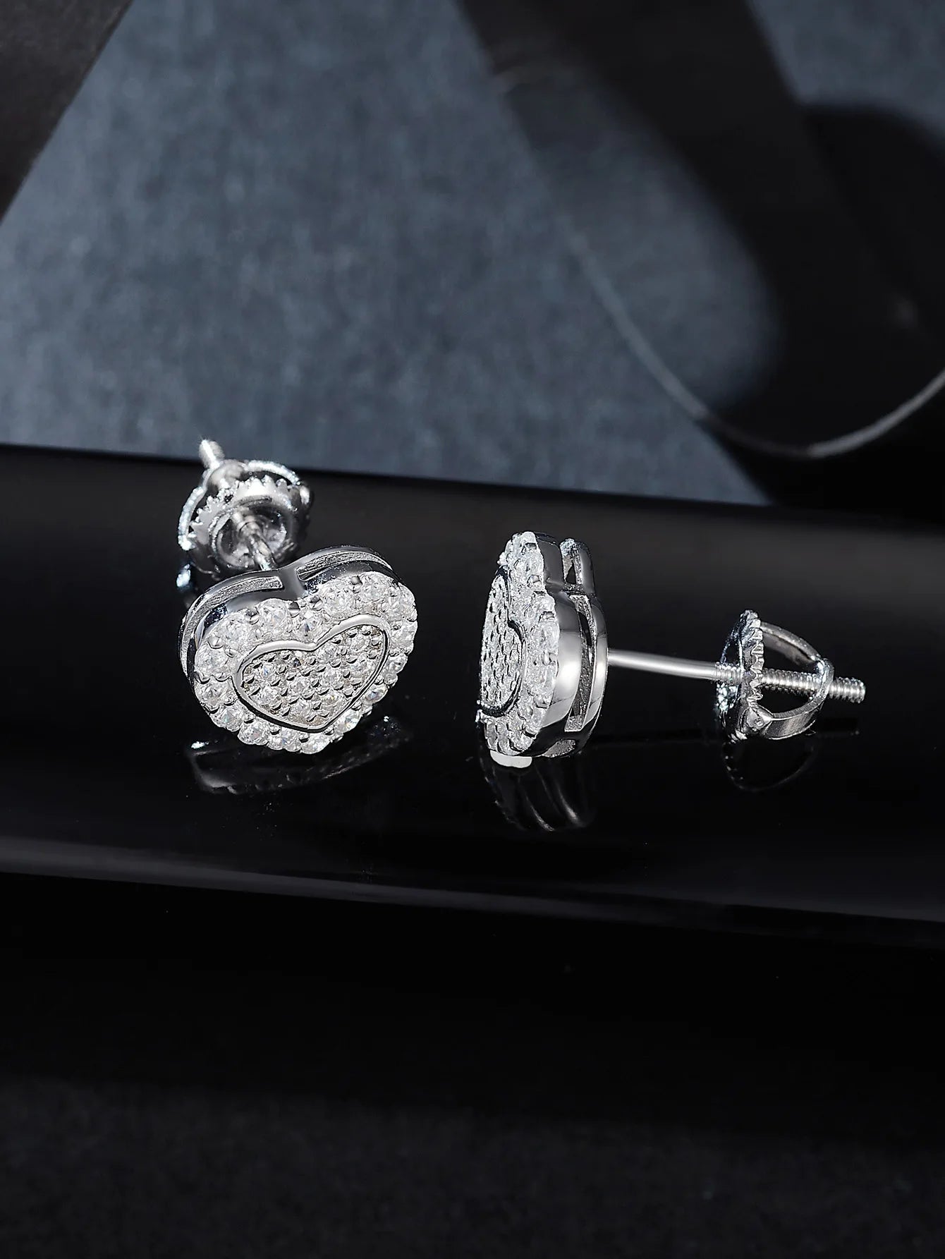 Heart-Shaped Moissanite Stud Earrings - Hip Hop Diamond Earrings