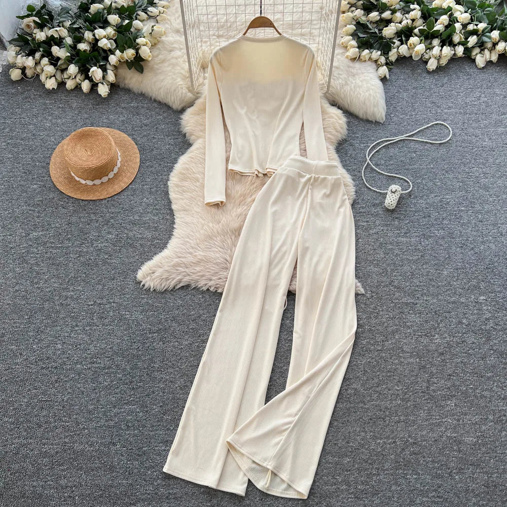 Channel early 2000s style with this chic Y2K-inspired two-piece set. Featuring a flattering O-neck top paired with high-waisted pants, this coordinated outfit delivers effortless retro-modern style perfect for the fashion-forward woman.