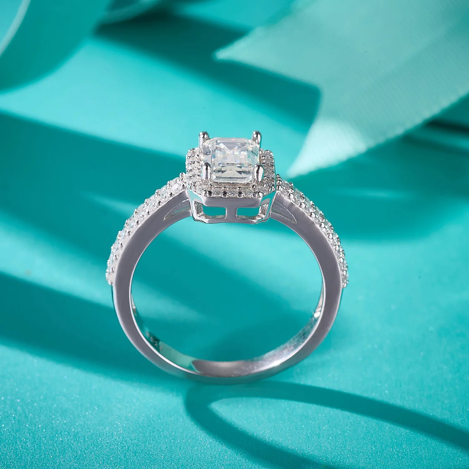 This stunning engagement ring features a 1-carat emerald cut VVS D-grade moissanite stone set in 925 sterling silver with white gold plating. The emerald cut showcases exceptional clarity and brilliance, while the classic setting creates a timeless look that will be treasured forever.