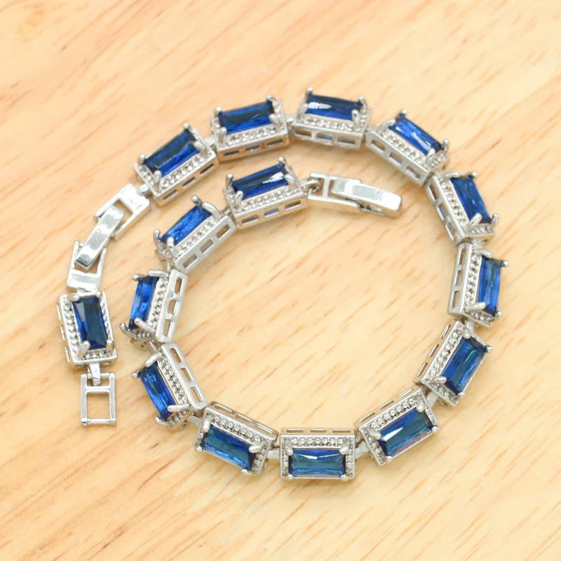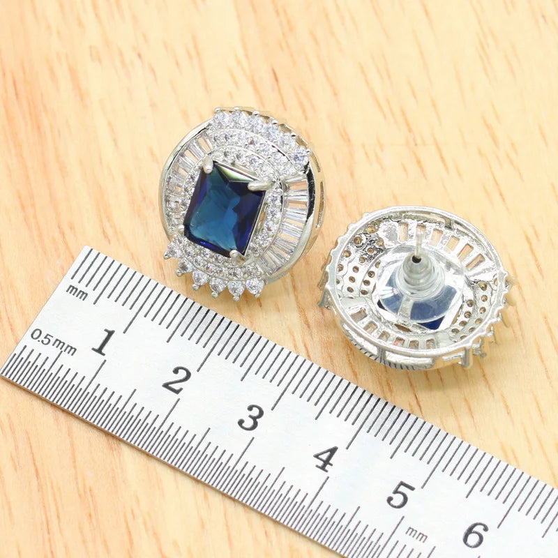 Complete your special day with this stunning 4-piece bridal jewelry set featuring brilliant blue zircon stones in platinum-plated silver. Perfect for weddings, anniversaries, engagements, and special celebrations.