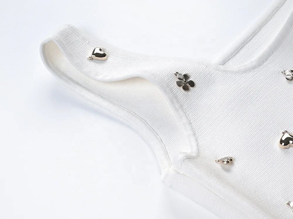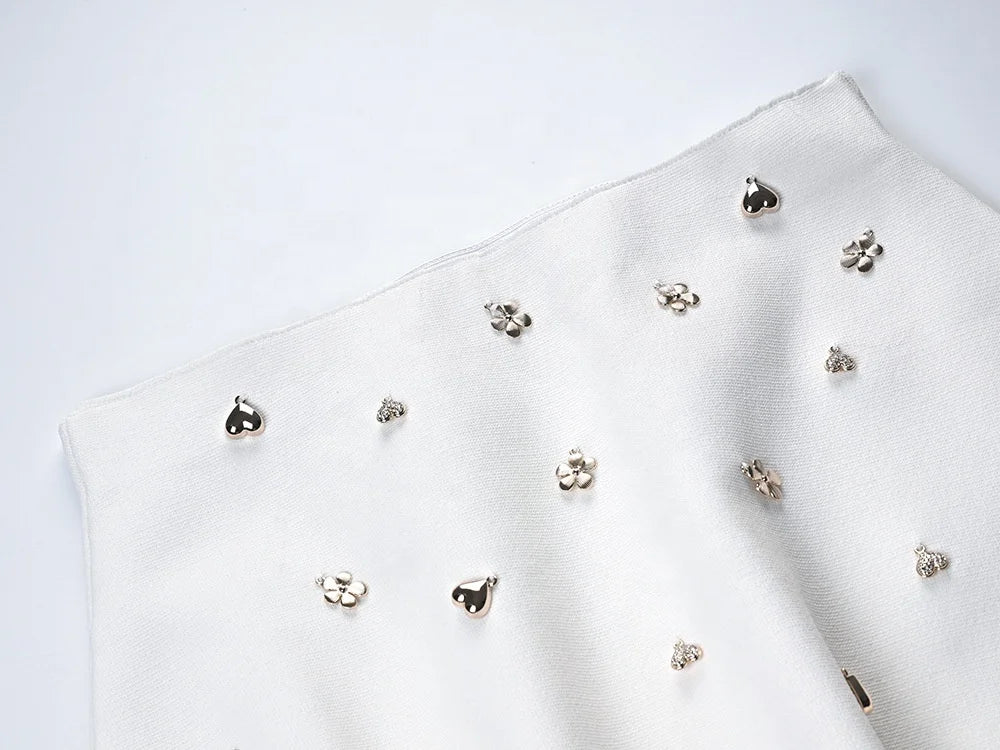 Style: Two Piece Set - Embellished Vest & Lotus Leaf Mini Skirt