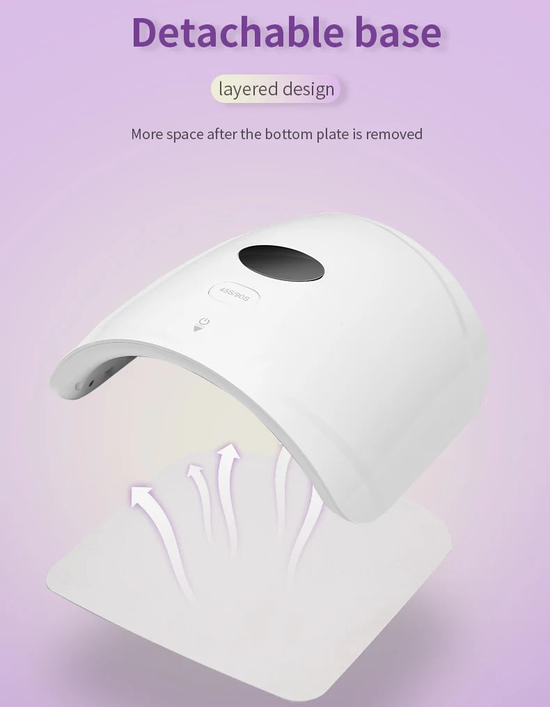 This smart nail dryer takes the hassle out of gel manicures. The sensor technology means no buttons to press with wet nails—just slide your hand in and the lamp automatically starts. The dual timer settings give you perfect control for base coats, color layers, and top coats, while the LED display keeps you informed throughout the curing process.