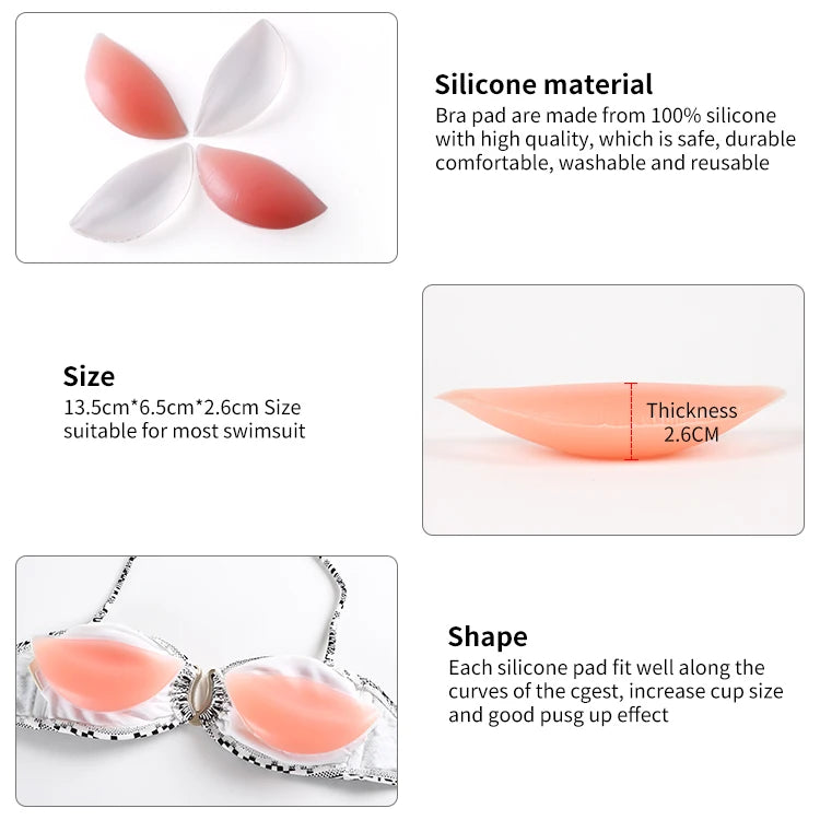 Enhance your natural curves with confidence using these medical-grade silicone breast enhancers. Designed to add volume and create a natural-looking shape, these versatile inserts work with any bra or can be worn strapless for backless and strapless outfits.