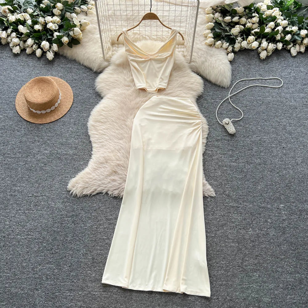 Embrace effortless summer style with this chic 2-piece set featuring a swinging collar sleeveless top and high-waist slim skirt. Perfect for creating polished, American-inspired casual looks with a modern, feminine touch.