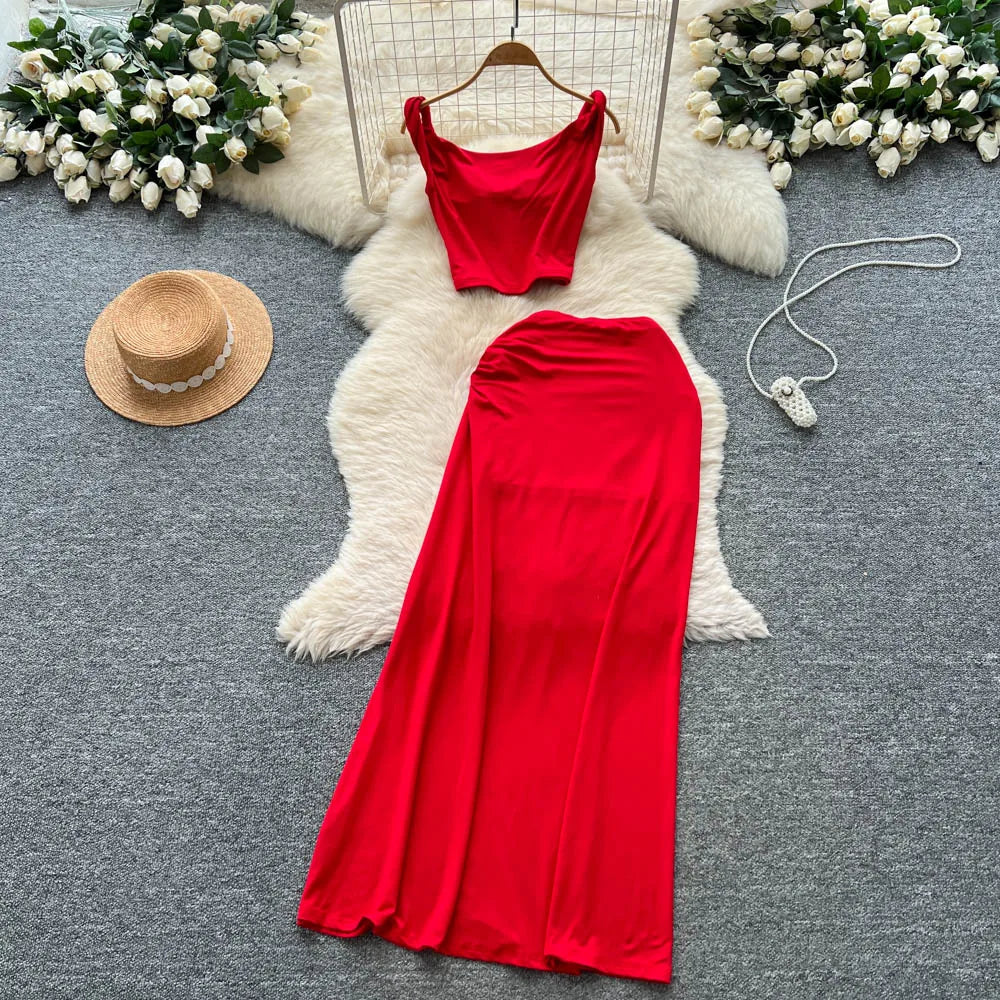Wear the set together for a coordinated casual look, pair the sleeveless top with denim shorts for relaxed vibes, or style the slim skirt with a fitted tank top for endless outfit possibilities.