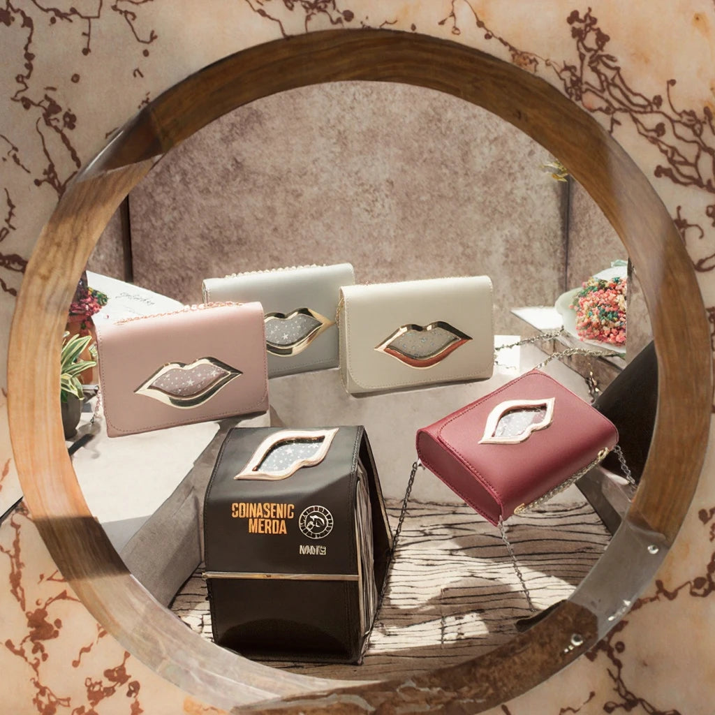Add a touch of glamour to any outfit with this stylish crossbody messenger bag. Featuring eye-catching lip and star decorations with a chic chain strap, this compact square bag combines fashion and functionality. Perfect for nights out, casual days, or anytime you want to carry your essentials hands-free with style.