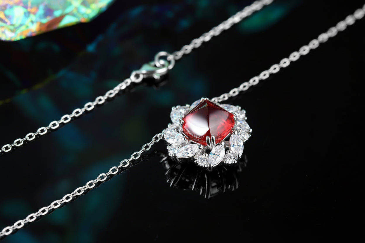 Add timeless elegance to your jewelry collection with this exquisite vintage-inspired flower necklace. Crafted from genuine 925 sterling silver and featuring beautiful lab-grown gemstones, this piece combines classic design with modern sustainability.