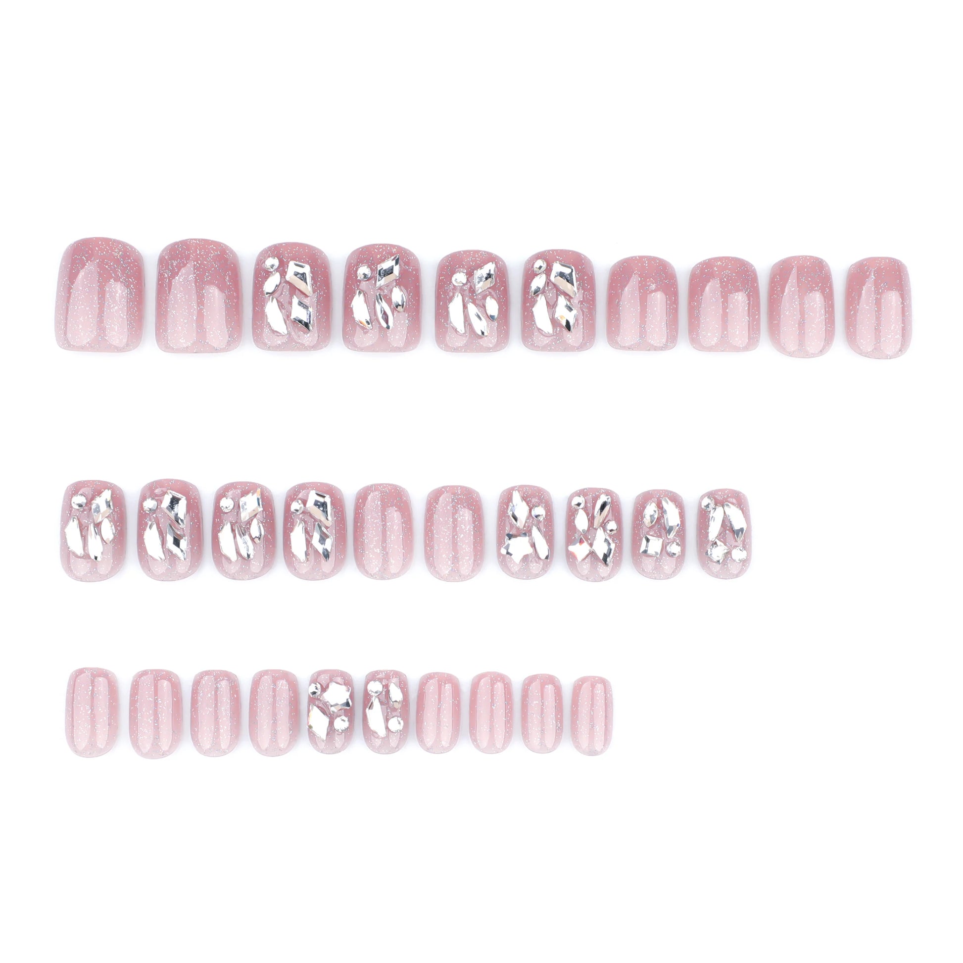 Sparkling Diamond Press-On Nails - Full Glitter Powder Acrylic (30 Pieces)