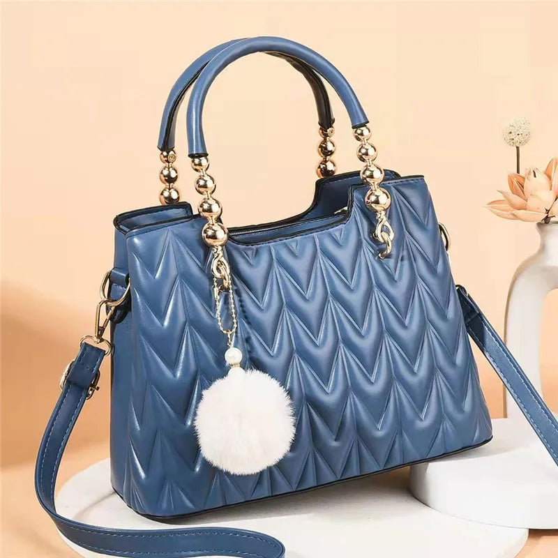Add a playful touch to your daily look with this fashionable bucket-style crossbody bag. The charming fur ball pendant adds personality while the practical design keeps your essentials organized and accessible.