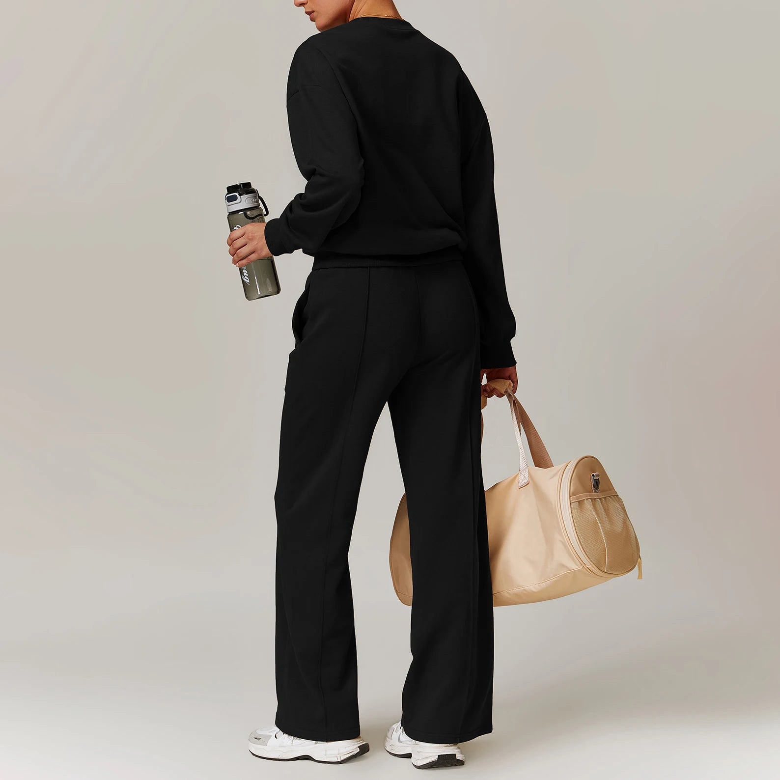 Elevate your workout wardrobe with this coordinated 2-piece athletic set. Designed for women who demand both style and functionality, this matching sports bra and jogger set takes you seamlessly from gym to street.