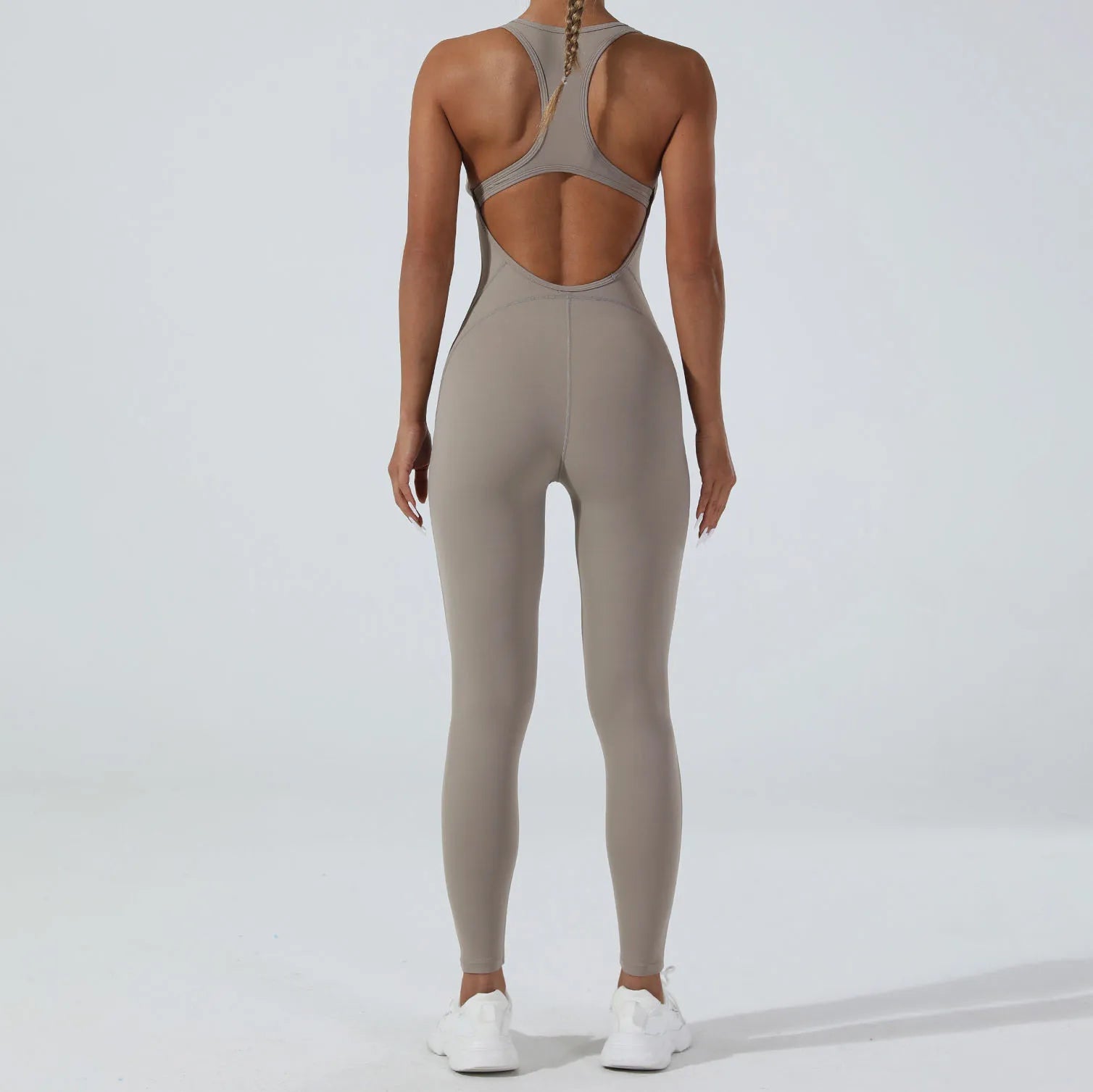 This all-in-one workout jumpsuit eliminates the hassle of matching separates while providing maximum comfort and style. The high-quality stretch fabric ensures it moves with you through every pose, rep, and stride, while the beauty back design keeps you looking chic from every angle.