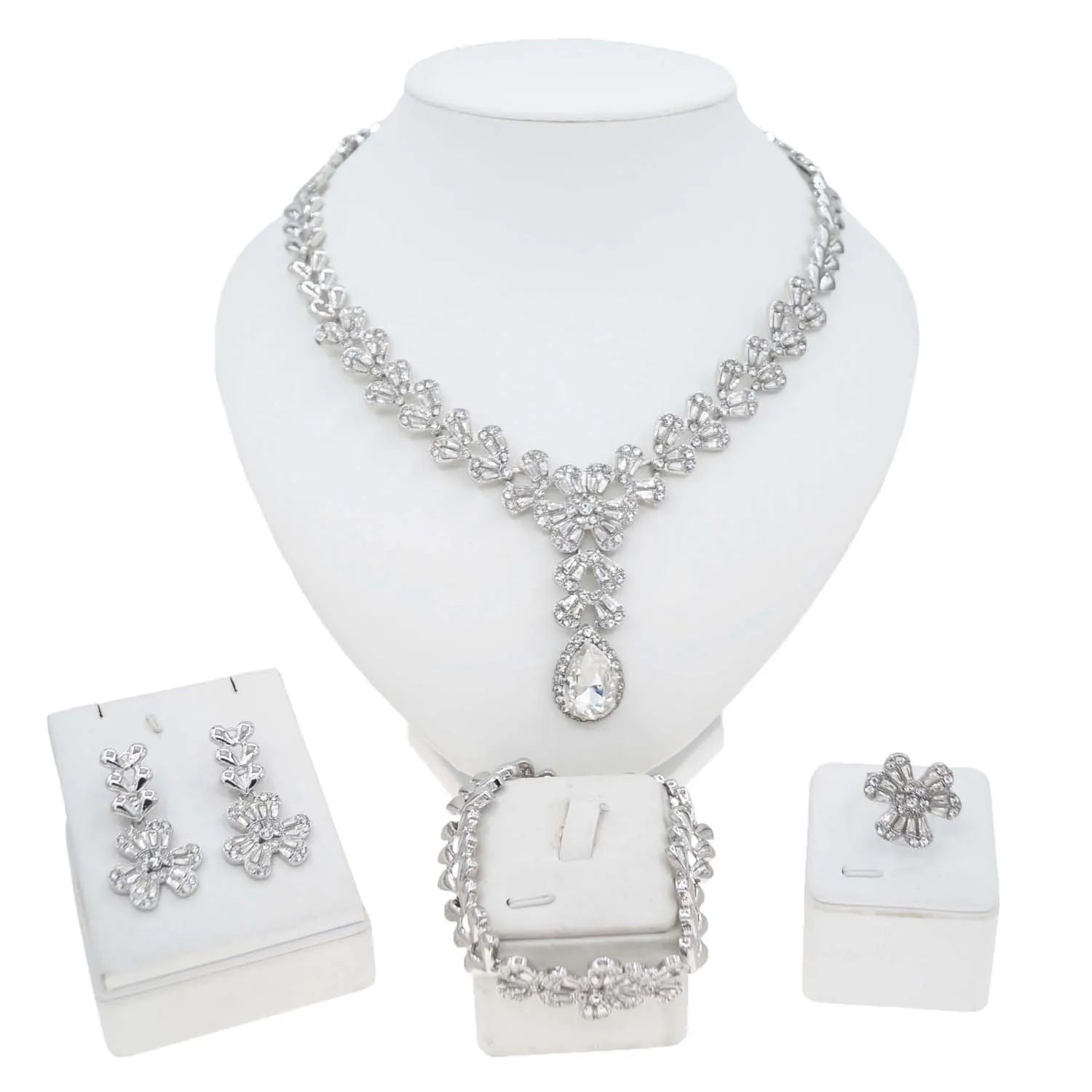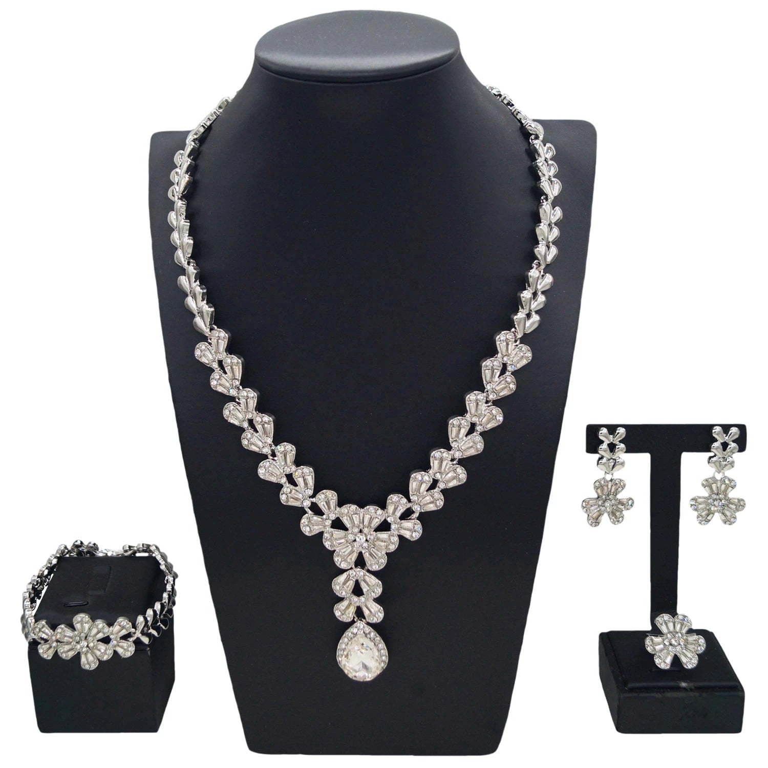 Waterdrop African Jewelry Set - Silver Plated Necklace, Bracelet, Earrings & Ring